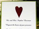 A couple of simply stated wedding invitations by Charity. The invitation details have been printed onto white cardstock - 3 to a page, cut and then matted with co-ordinating colored card stock to add strength.