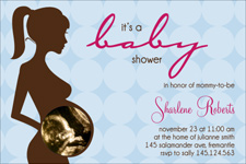 We are personalizing invitations by putting a picture of the mom to be's sonogram into the belly of this cute mama silhouette. All you need to do is print them off at home or at a photo lab of your choice. Cheap as chips.