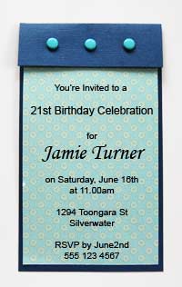 Print the invitation details onto the top card making sure to leave the top 1½" blank. Slip the top card into the fold of the base.